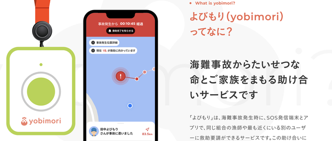 近隣の船に乗っている漁師さんに通知が飛びことで一次救助を可能にした、海難救助ネットワークシステム「よびもり」の仕組みは非常にシンプルです。必要なのは、首から下げられる小さなSOS発信端末とスマートフォンのアプリのみ。SOS発信端末は、セルラー通信を使って一定時間ごとに位置情報を取得しており、1回の充電で数日稼働することができます。漁師など海に出ている人が海難事故に巻き込まれた場合、端末のボタンを押せば、アプリに事故発生と経過時間、現場の位置情報が通知され、周囲の船が一次救助に向かえるという仕組みです。アプリへの通知は複数名に行うことができ、上限数に制限はないため、組織単位で導入することも...