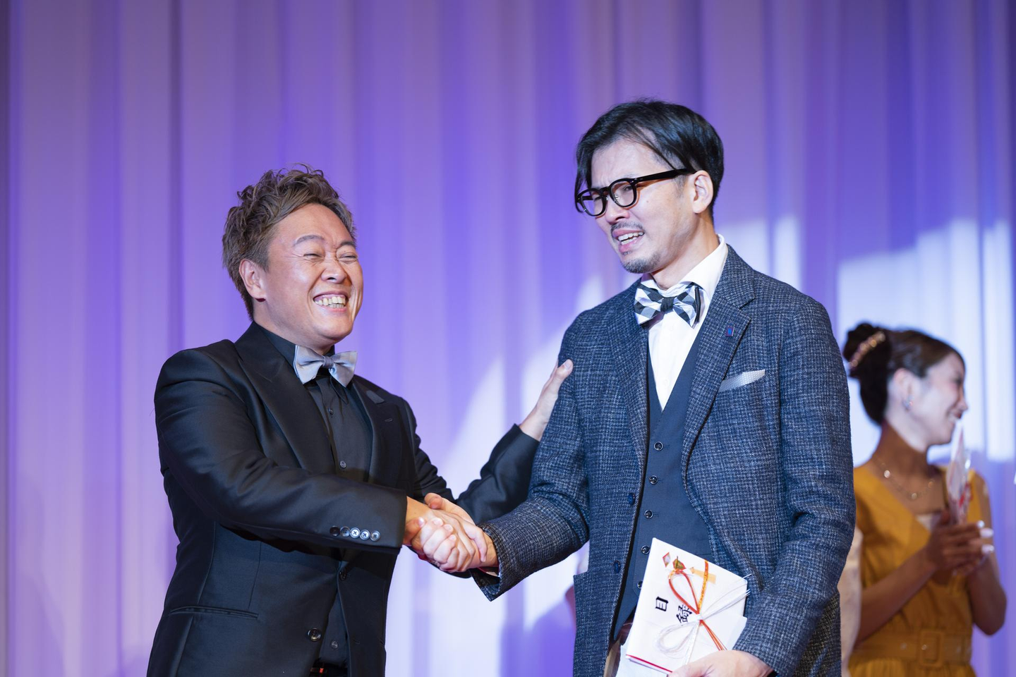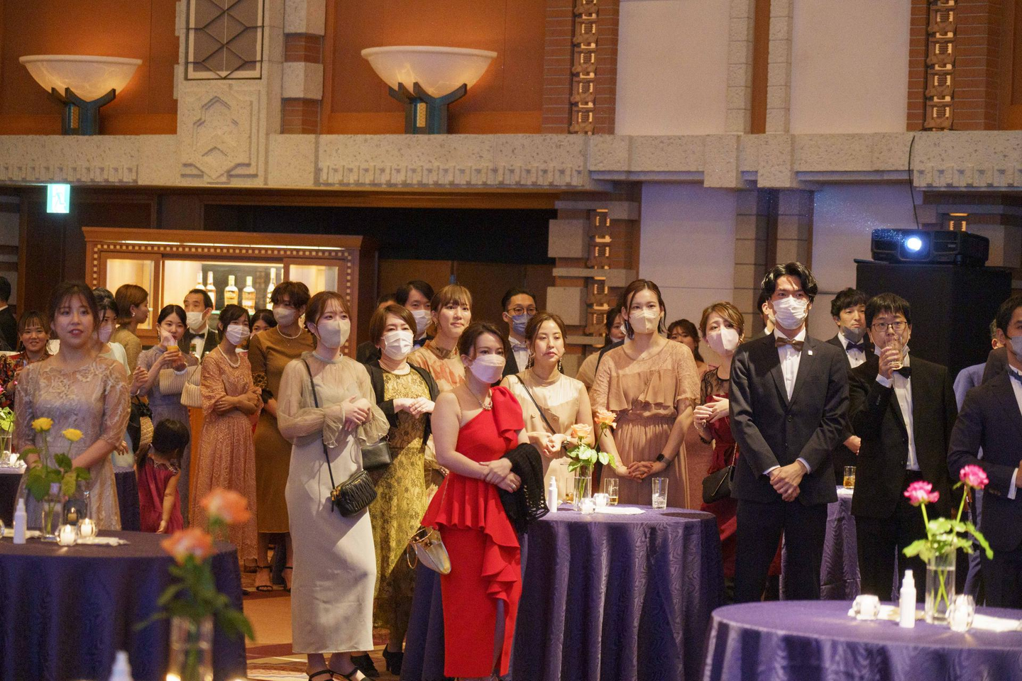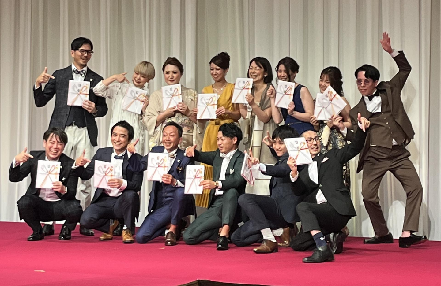 また、当日はドレスコードが設定されており、皆さん思い思いの華やかな装いに身を包んでいます。スーツで参加される方は「ネクタイではなく蝶ネクタイ」必須となっており、いつもとは少し違ったスーツ姿を見ることができました。