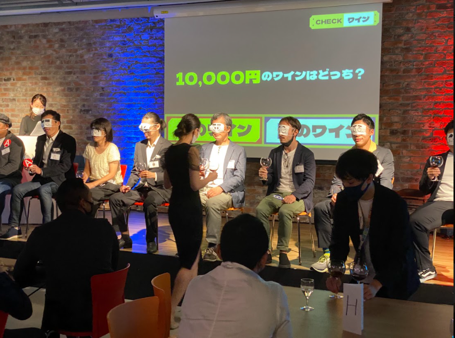 10,000のワインと1,000円のワインの飲み比べをしている様子