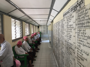 こちらの施設は2箇所とも、ご利用者様から一切の料金をとっておりません。また、公的資金もほとんど無く、財源は寄付で成り立っています。寄付していただいた方は必ず壁に名前を記すようになっているため、施設のいたるところに名前が記載されています。ミャンマーでは定期的に寄付する文化があり、毎日多数の人が寄付していただけます。日本ではどうしても公的資金が運営資金の大きな割合を占めますが、ミャンマーでは公的資金に頼れないため、地域コミュニティや個人とのつながりを非常に重視しています。