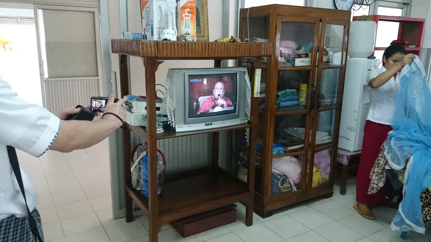 ミャンマーの国営テレビには毎日必ずお坊さんが映し出され、説法を行います。