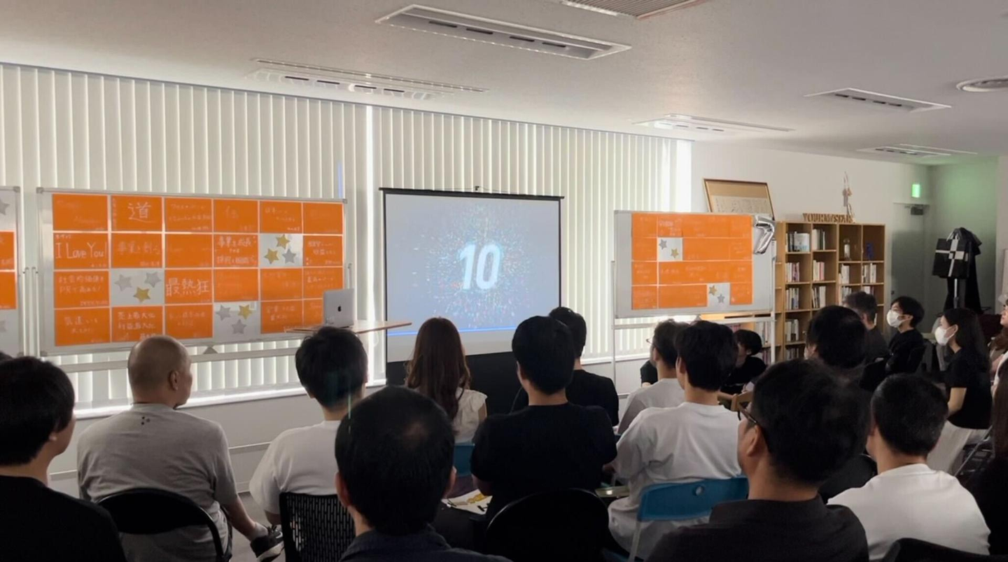チーム対抗戦で協力したチームへの感謝や日々の業務においての応援の気持ちを伝えあったり、代表と取締役からは記念のプチギフトをメンバーへ手渡ししたりと、和気藹々とした雰囲気でした。