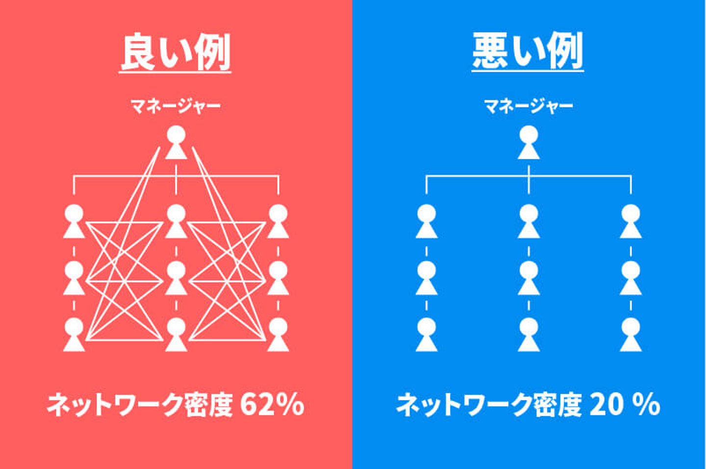 つまり、ここで言いたいことはフラットな形と同時に「ネットワークの密度」が重要になるということです。「ネットワークの密度」とは一言で言うと、「情報の量が多く、そして早く正確に伝えることができるかどうか」です。