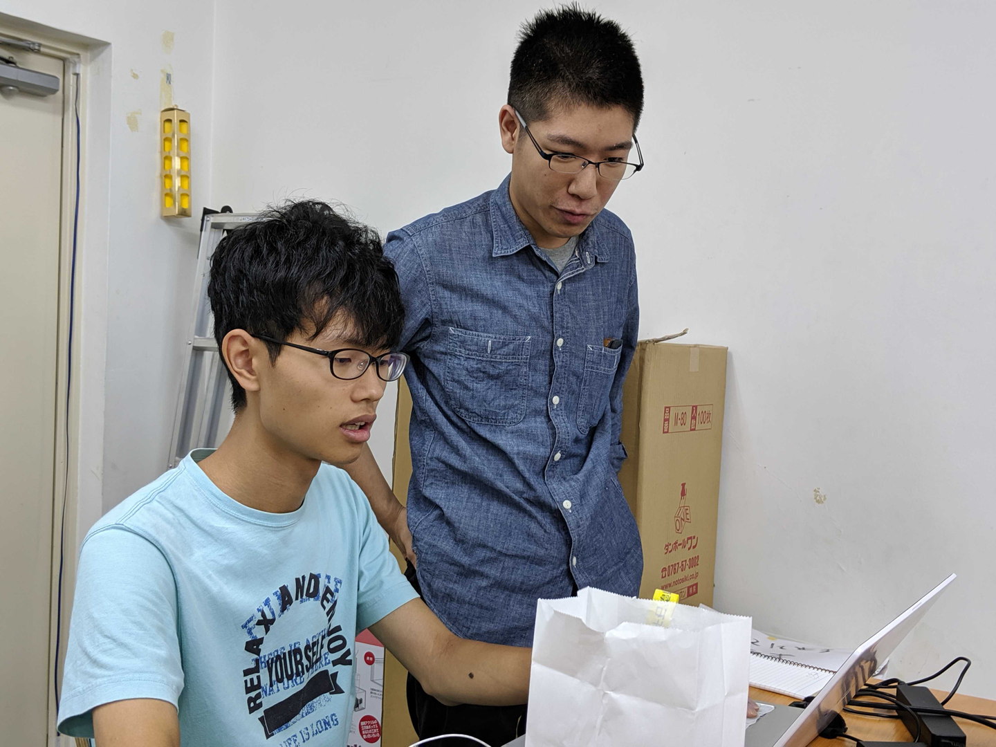 上の写真↑は、3Dプリンタで実際に形を起こす前に細かいところをハードウェアエンジニアの高岡がレクチャーしている様子です。