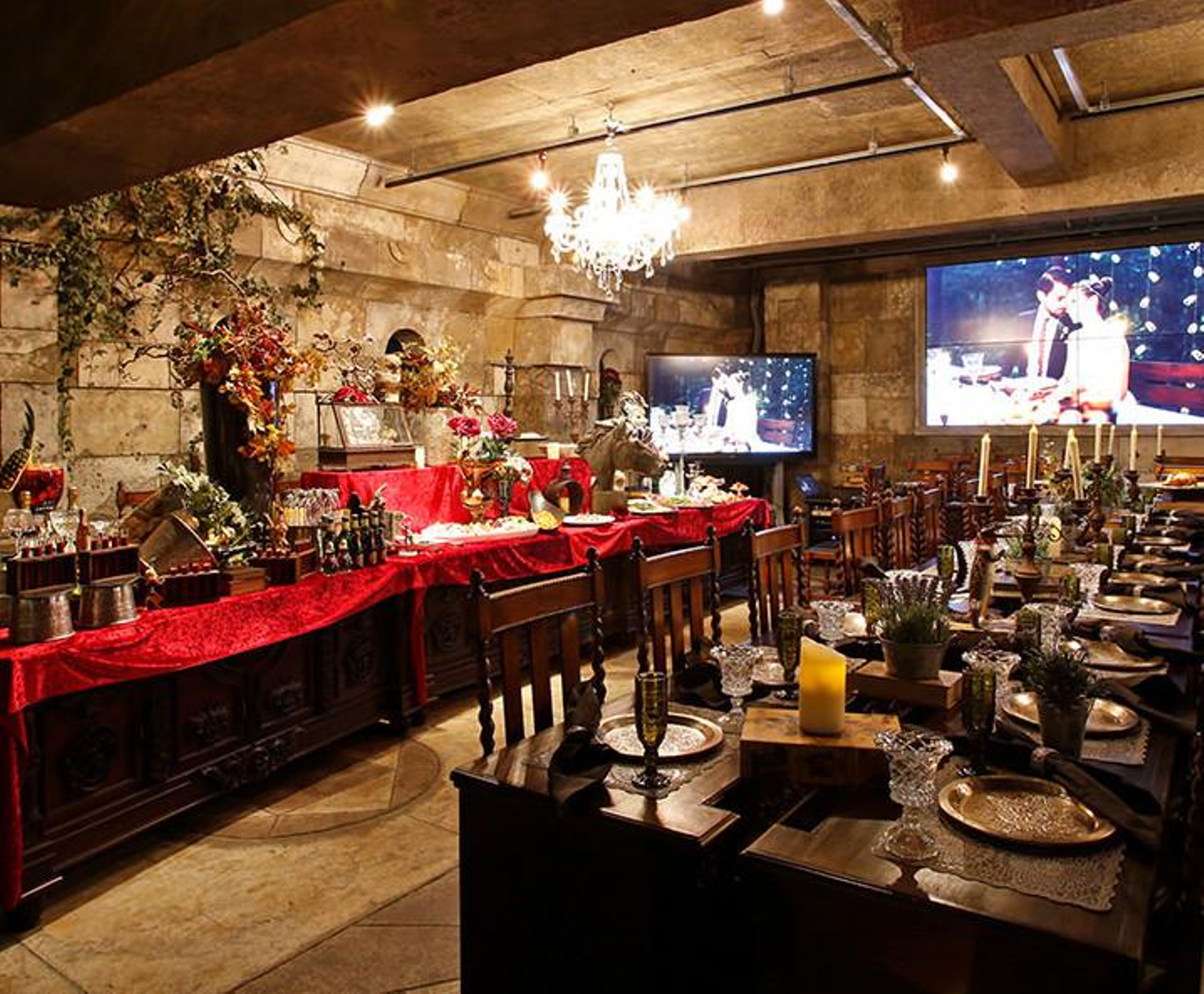 女子会におすすめの絵本の世界へ誘う空間『アリス』やハリポッターの『王宮の魔法学校』があり、非日常空間を体験できます。