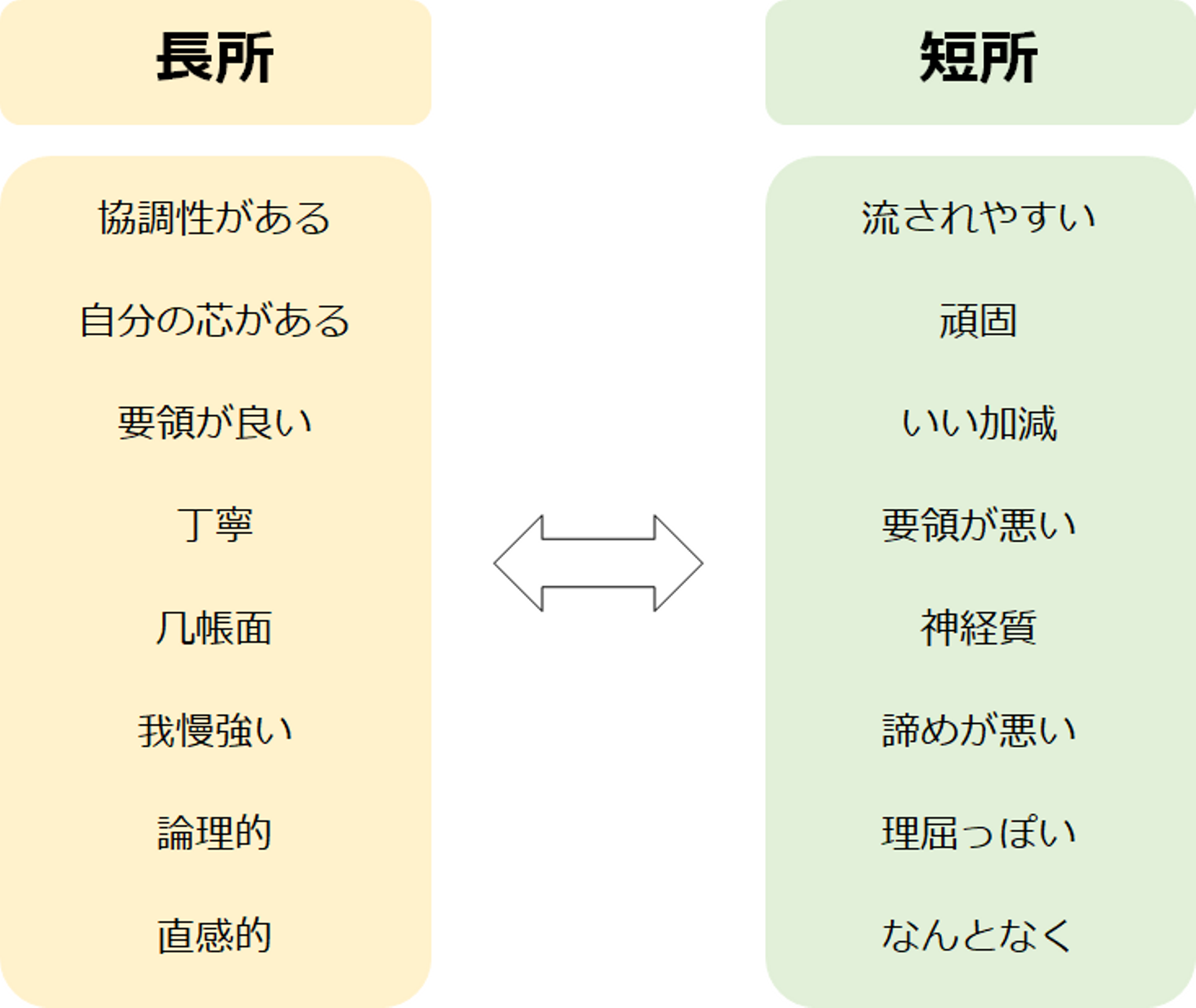 ↑長所と短所を言い換えた一例。あくまで一例なので参考程度に。