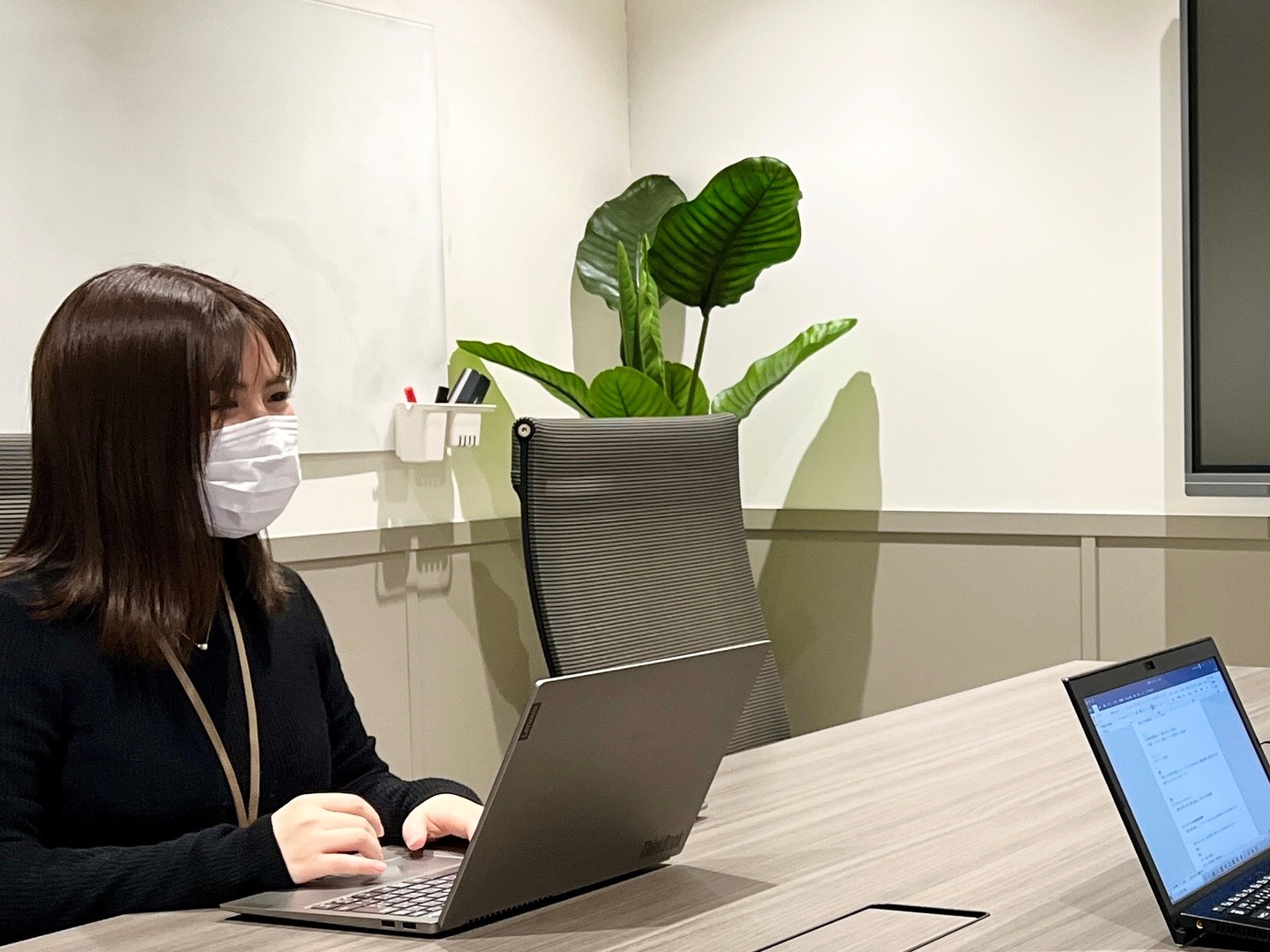 コロナ禍における衛生管理や、文房具や飲食物など備品の補充、郵送物の確認、電話対応などが挙げられます。また、半期ごとに行われる全社会の会場の下見も行いますし、12月になればクリスマスツリーの飾りつけも行います(笑)