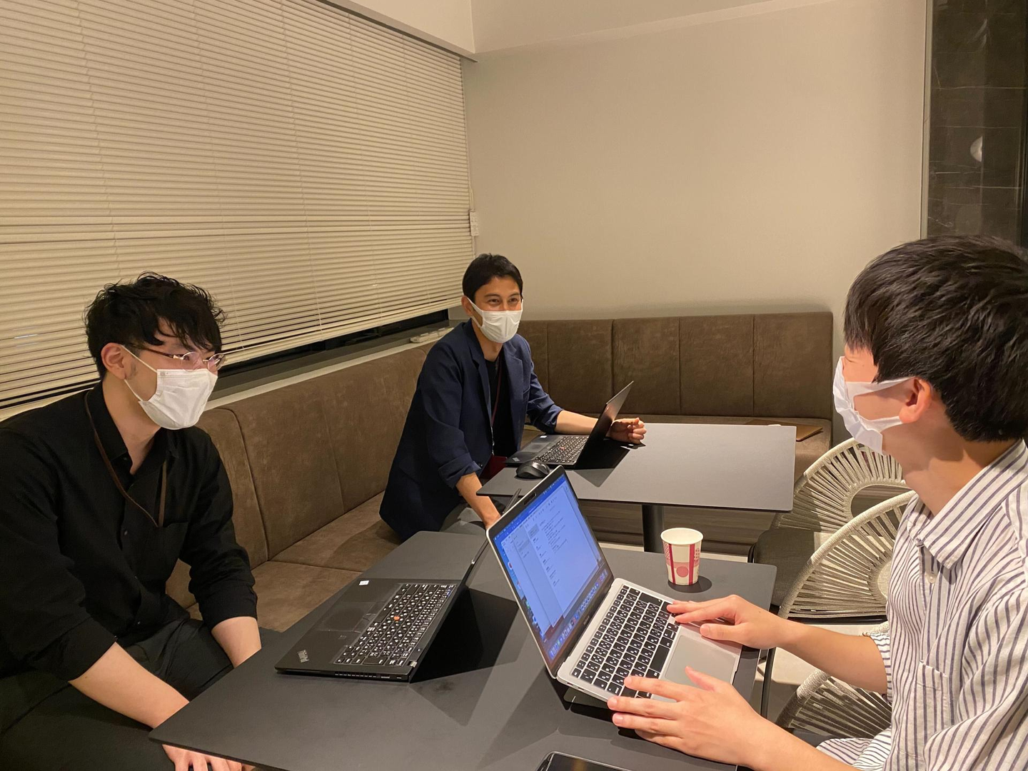 左:越智さん、左奥:小林さん、右:白濵 (インターン生)