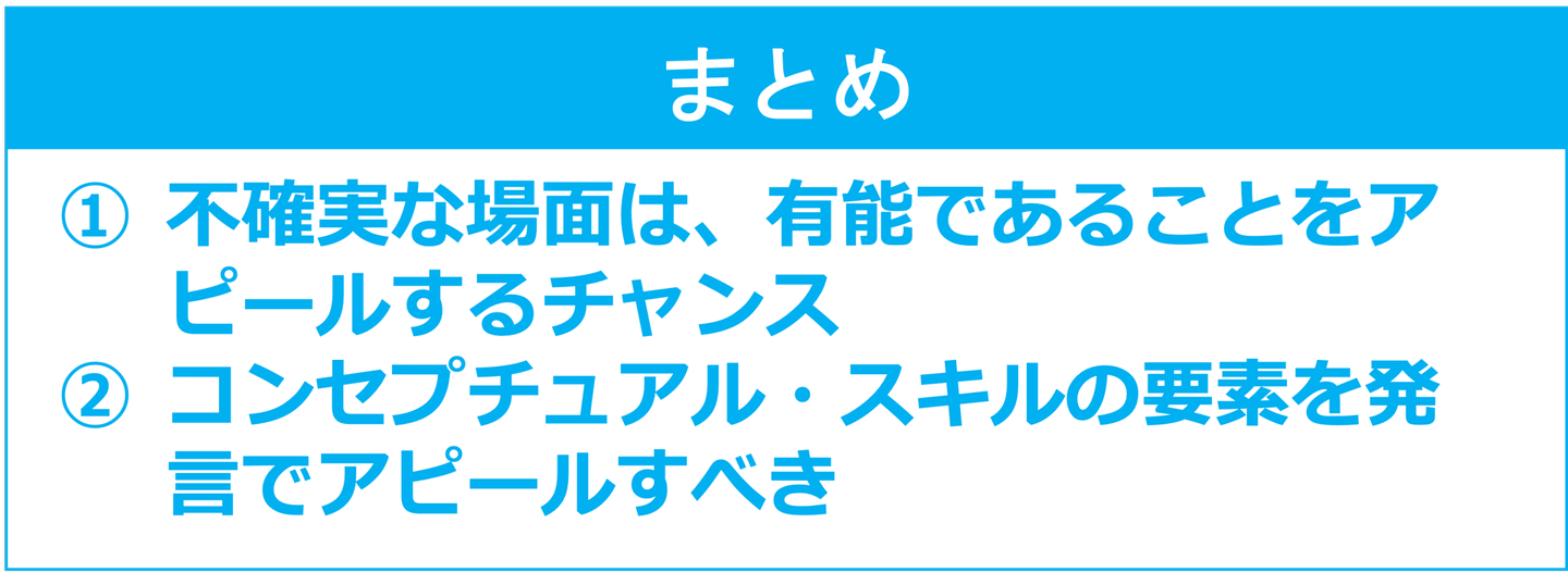 そうであるならば、GDにおける不確実性は、企業の求める人材が持つコンセプチュアル・スキルの見せ所です。