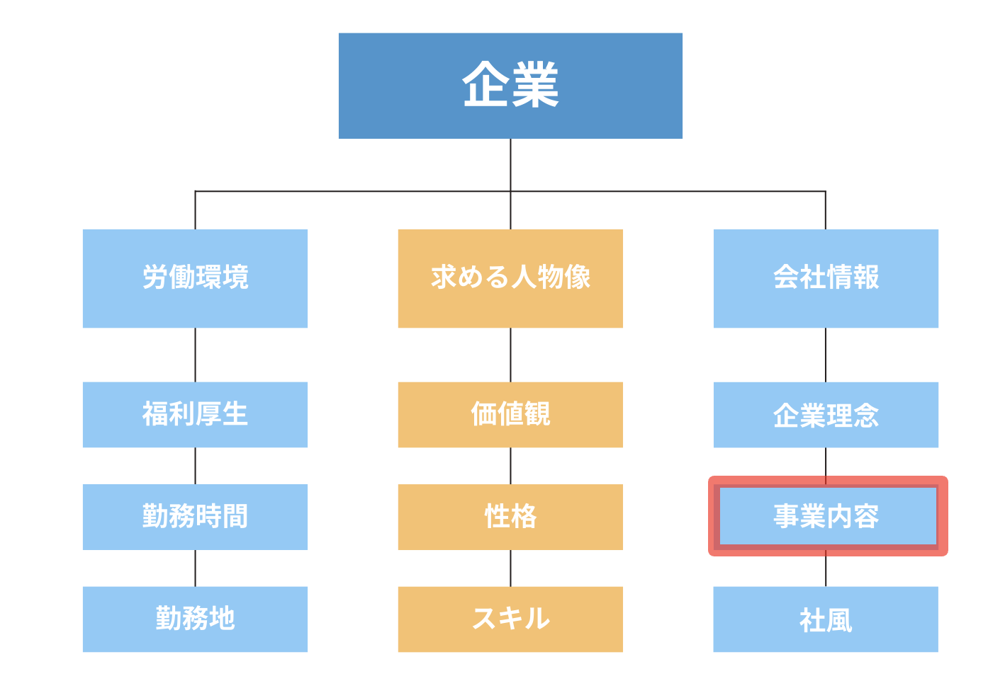 (例)「面接で携わりたい事業を聞かれるから、会社情報の中でも事業内容を調べておこう」
