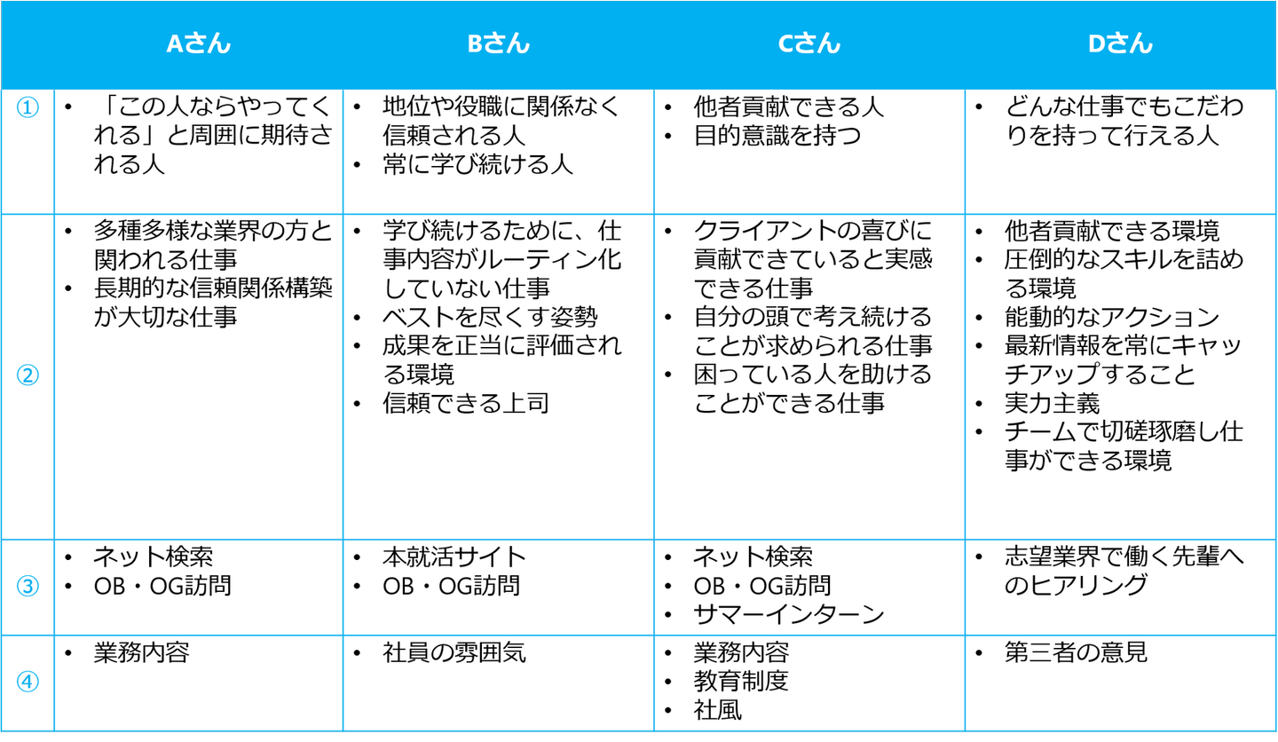 自分やその企業に勤める人だけの考えだとプラスの面しか見れない可能性があるため、第三者からも意見をもらうことを意識していました。