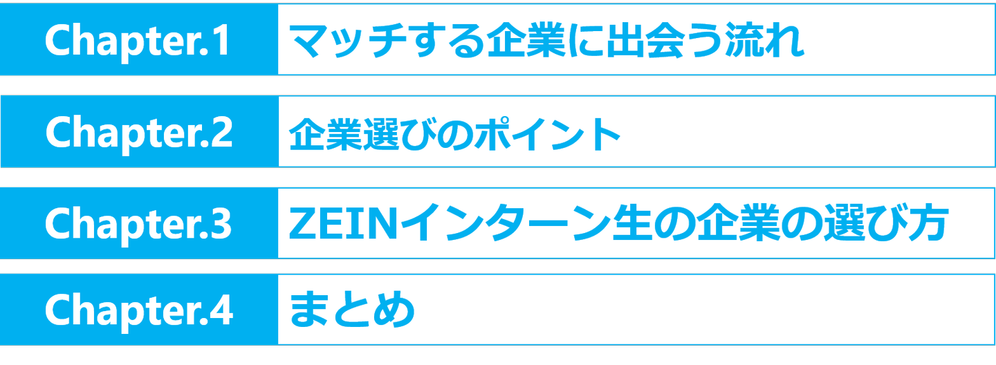 以上の内容を踏まえて、具体例としてZEINのインターン生は就職活動で企業をどのように選んでいたか、4つの質問に答えてもらいました!みなさんも以下の質問について答え、自分なりの企業選びをしてみてください。