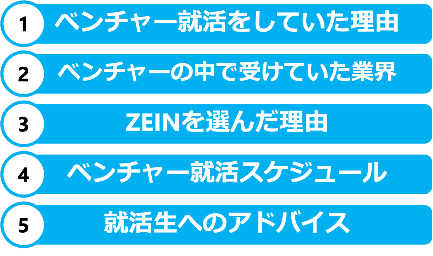 ベンチャーを目指す就職活動に関する情報を得る機会は少ないと思いますので、今回は、ベンチャー志望で就職活動を行い、ZEINに新卒で入社した三名の社員に、「ベンチャー就活」についてインタビューしました。
