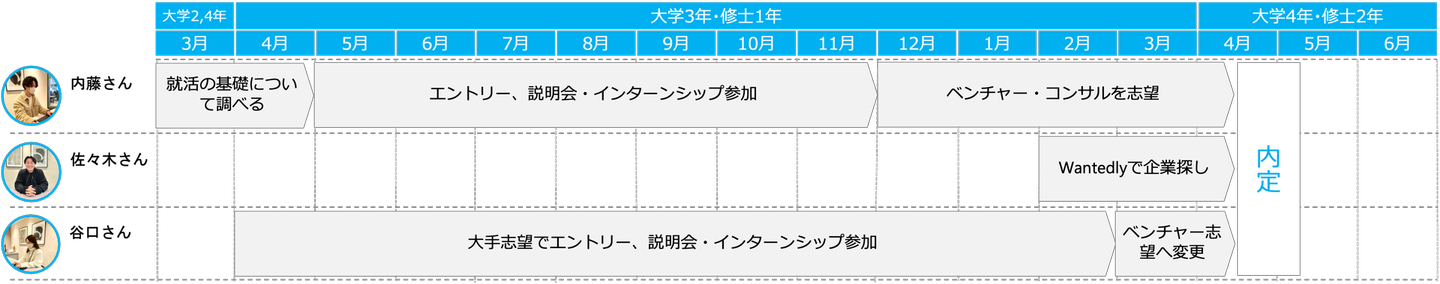 ▼こちらが、三名の就活スケジュールです。