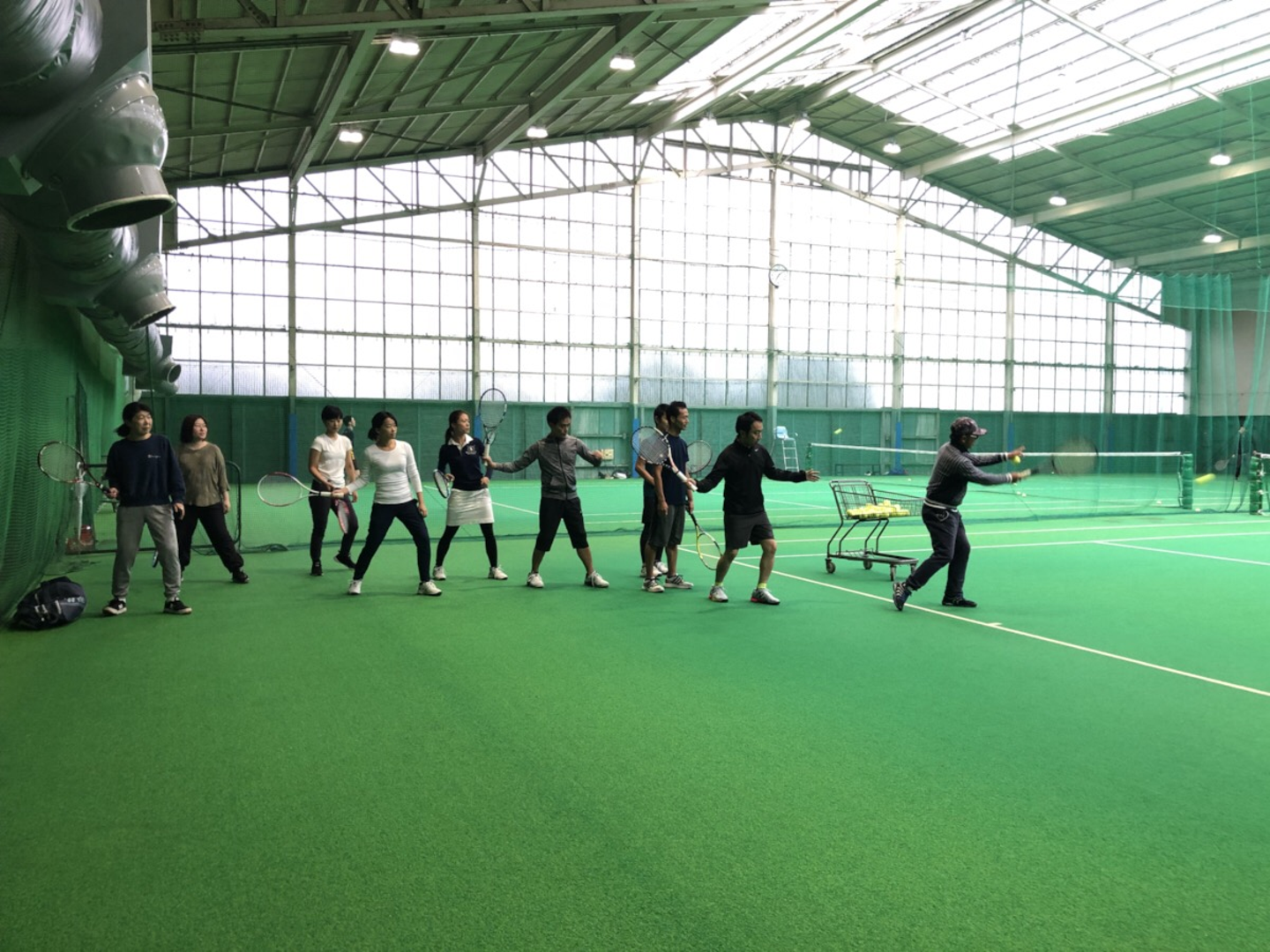 テニスは初めての皆さんですが普段からヨガ、ピラティスで実践している体幹の安定性や背骨を使って