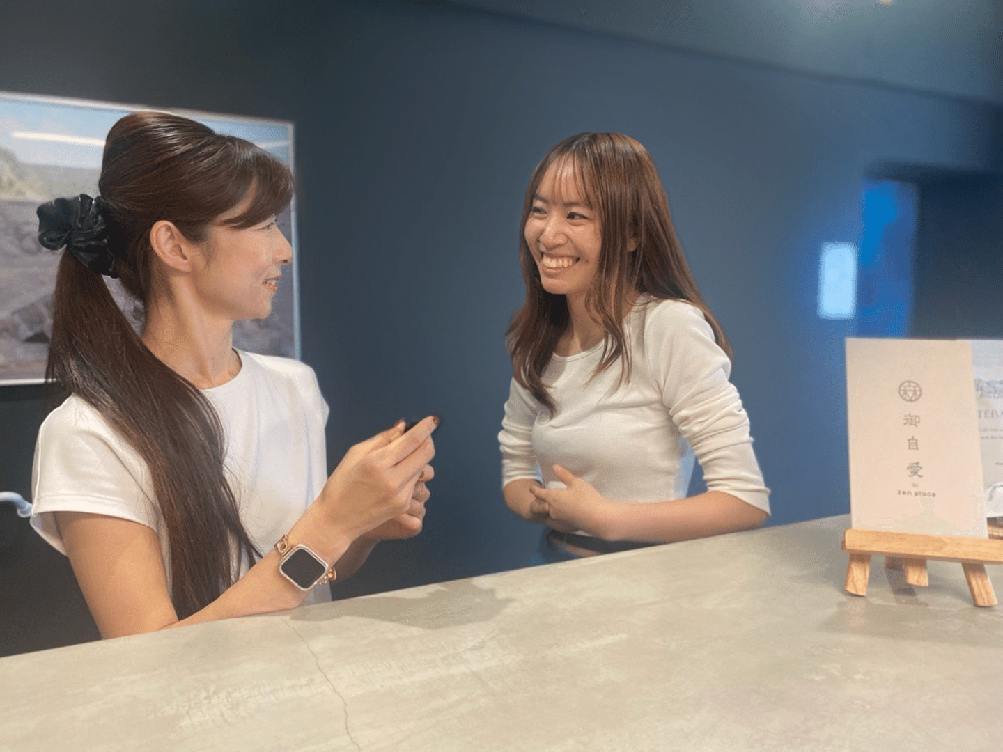 「御自愛 by zen place」の魅力や今後の展開について、2024年9月より同ブランドの商品企画・マーケティング担当として入社したKahoさん、同年4月よりWholebody Educator(インストラクター 以下WE)として入社し、現在は「御自愛 by zen place」のブランドアンバサダーも務めるAtsukoさんにお話しを聞きました。
