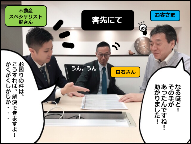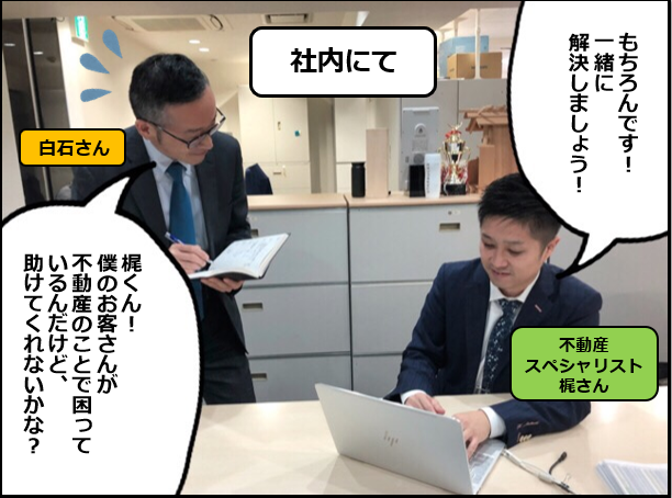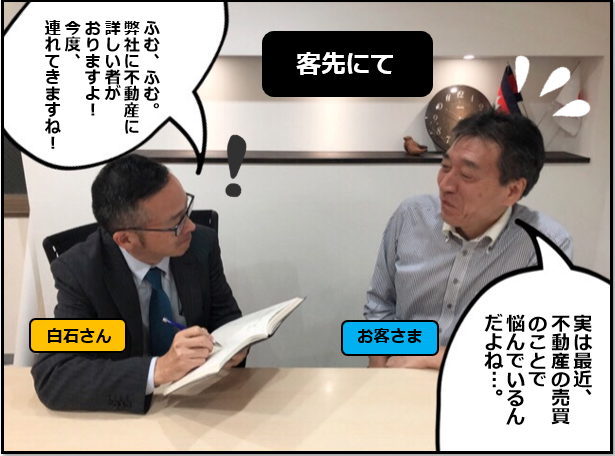 本日は、「聞き上手なベテラン営業マン」×「不動産のプロフェッショナル社員」の「かけ算」を、4コマ漫画にてお届けします!社内の雰囲気やメンバーの人柄を感じていただけると嬉しいです!