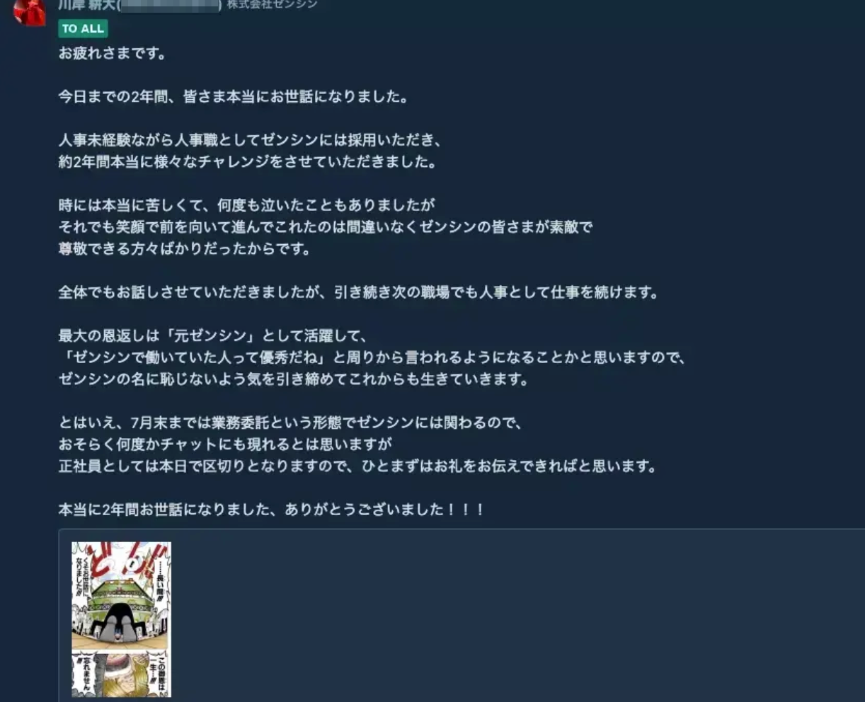 (本当は2023年6月20日に正社員としては退職済で、7月末までは業務委託という形式をとっていました。)
