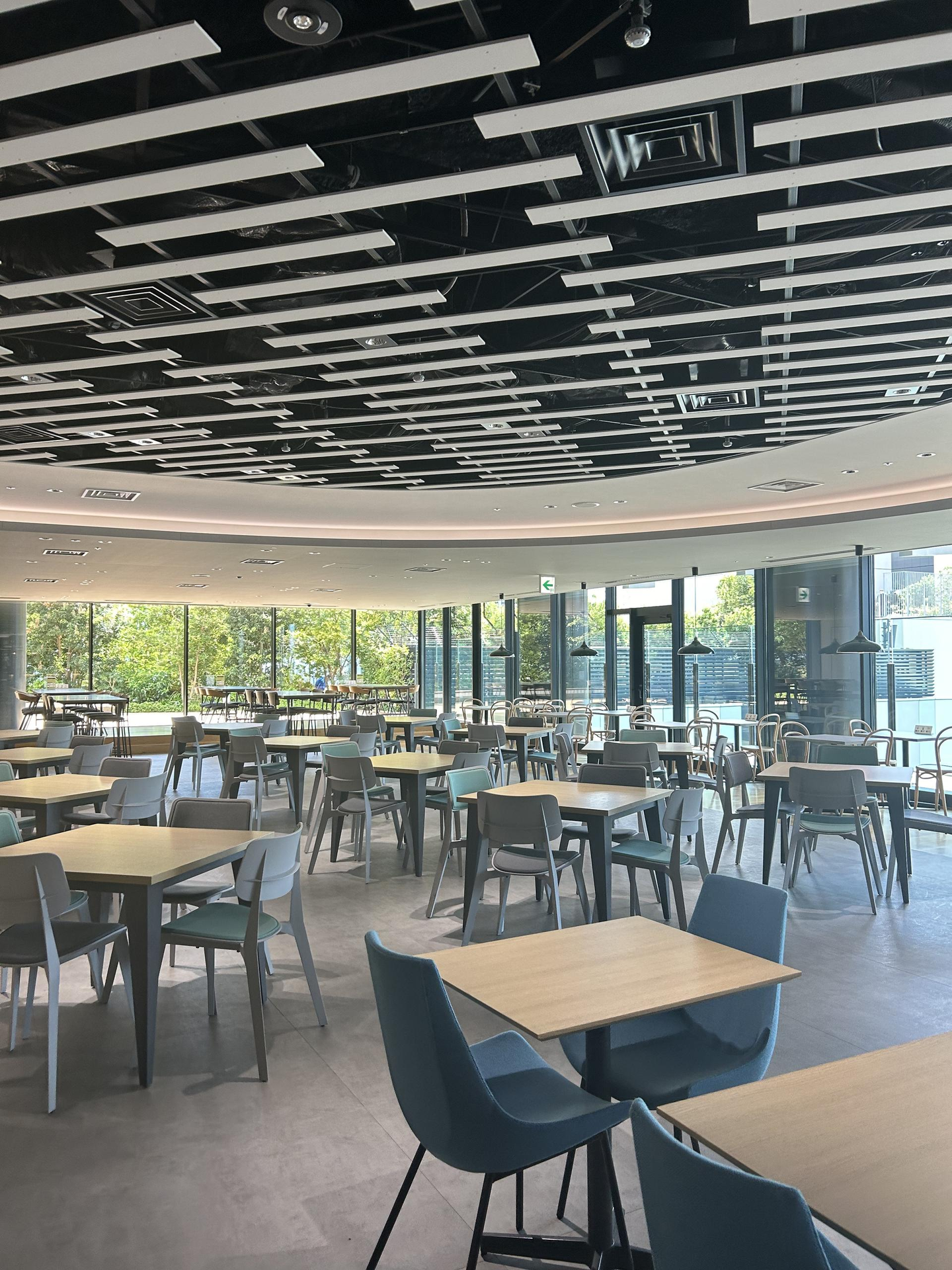 新オフィスでは食堂もあり、コンビニもオフィスの中にありますので、
