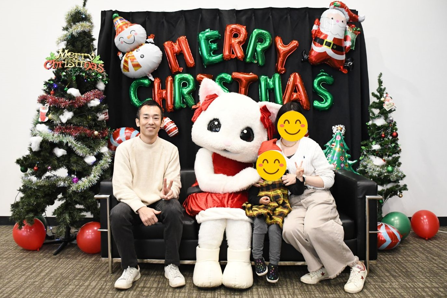 当社の大人気マスコットキャラクター『アップちゃん』がサンタの衣装に身を包んで登場!その愛らしい姿に子どもたちは大興奮で、会場は一気に笑顔と歓声に包まれました。