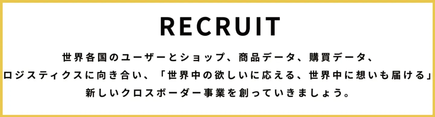 現在当社は、日本の商品を世界にお届けするサービスですが、将来的には日本のみならず、「世界中の素晴らしい商品を、世界中の人にお届けする」ことが、“使命”であると感じています。自国には無い、待ち望んでいた商品が遥々海を渡り、届いた時の“WOW”は当社サービスの存在意義であると思います。その感動をより多くのお客様に与えられるサービスに必ず成長させていきます。「モノを通じて人と人とを繋ぎ、世界をほんのちょっぴり小さくしたい」これは私自身が叶えたいビジョンです。