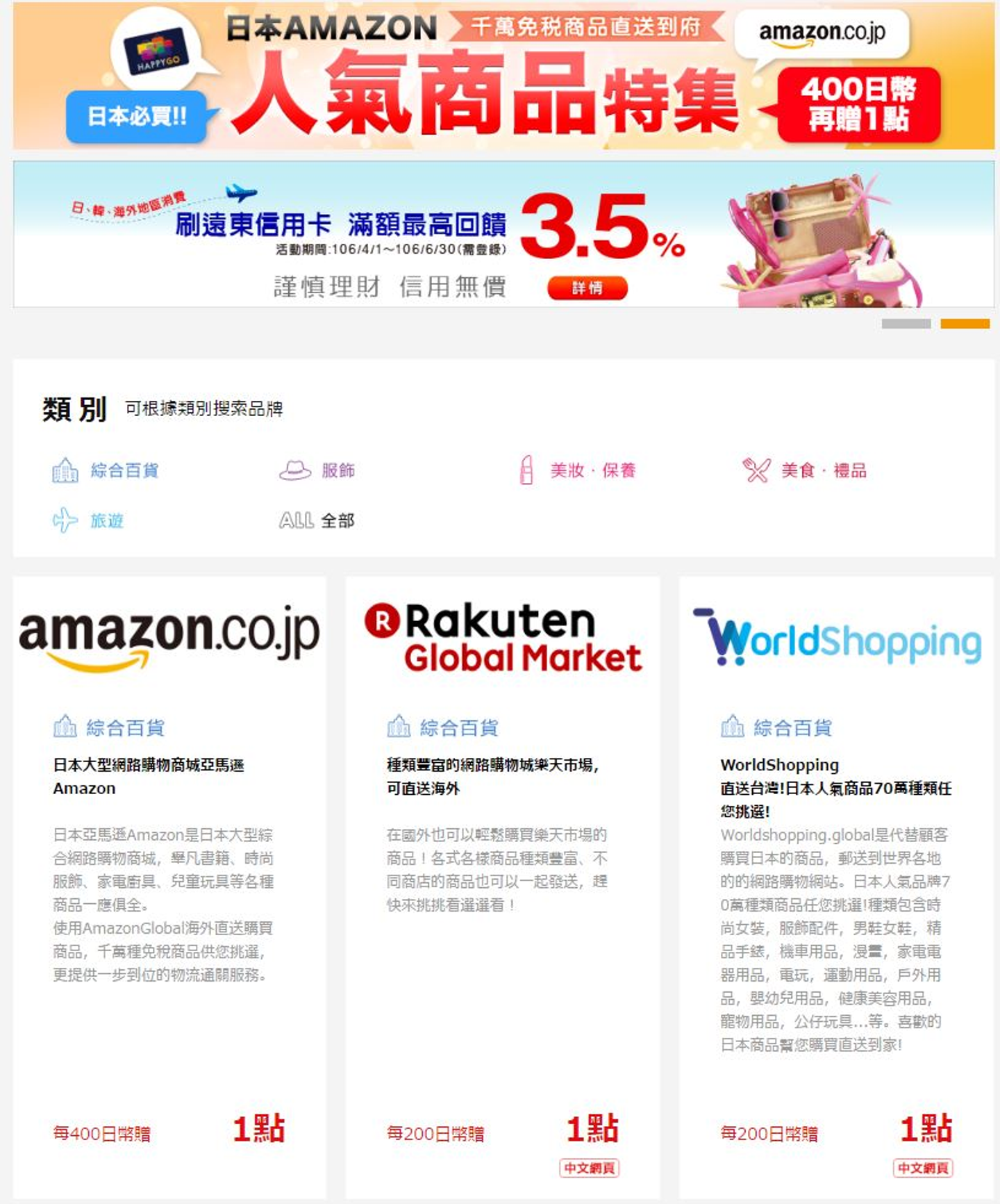 今日から台湾最大のポイントモール HappyGO https://www.happygocard.com.tw/ の 台湾←日本越境ECコンテンツ「HAPPY GO日本線上購」にWorldshoppingの掲載が今日から開始。http://www.happygoonlineshop.jp/ なんと、Amazonさん,楽天さんと横並びで掲載頂きました。HappyGoは台湾人口の半分以上か加入してるそう。5月からプロモーション告知をしてもらえるということでどうなるか楽しみです。