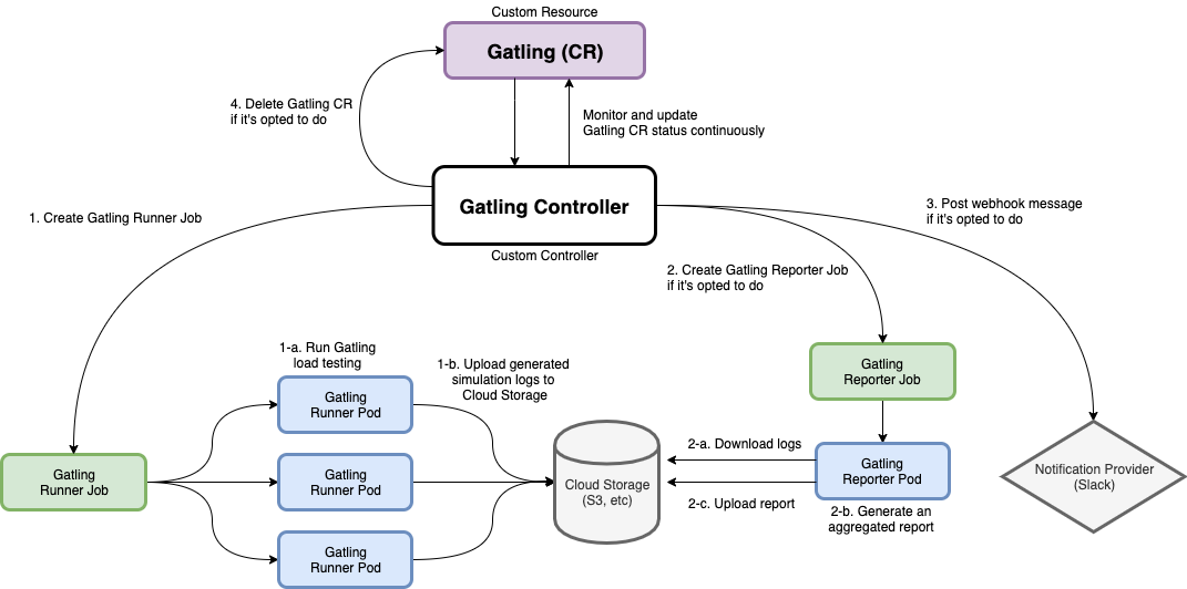 ・すべてのステップが完了すると、Gatling CRとその関連リソースであるJobやPodを削除します