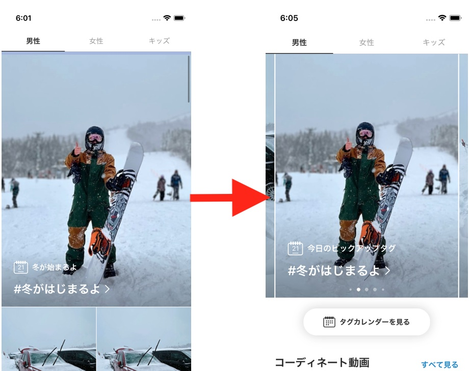 - 横スクロールで、コンテンツを切り替えられるレイアウトに変更