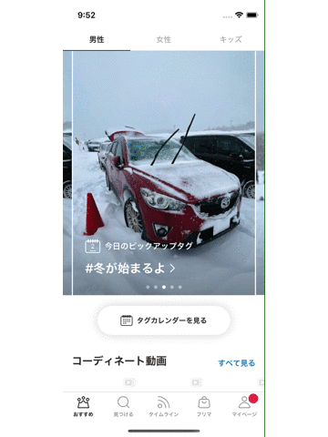 - スクロール処理は、scrollToItem(at:at:animated:)をデフォルトのアニメーションを有効にして、コンテンツをスクロールさせる。