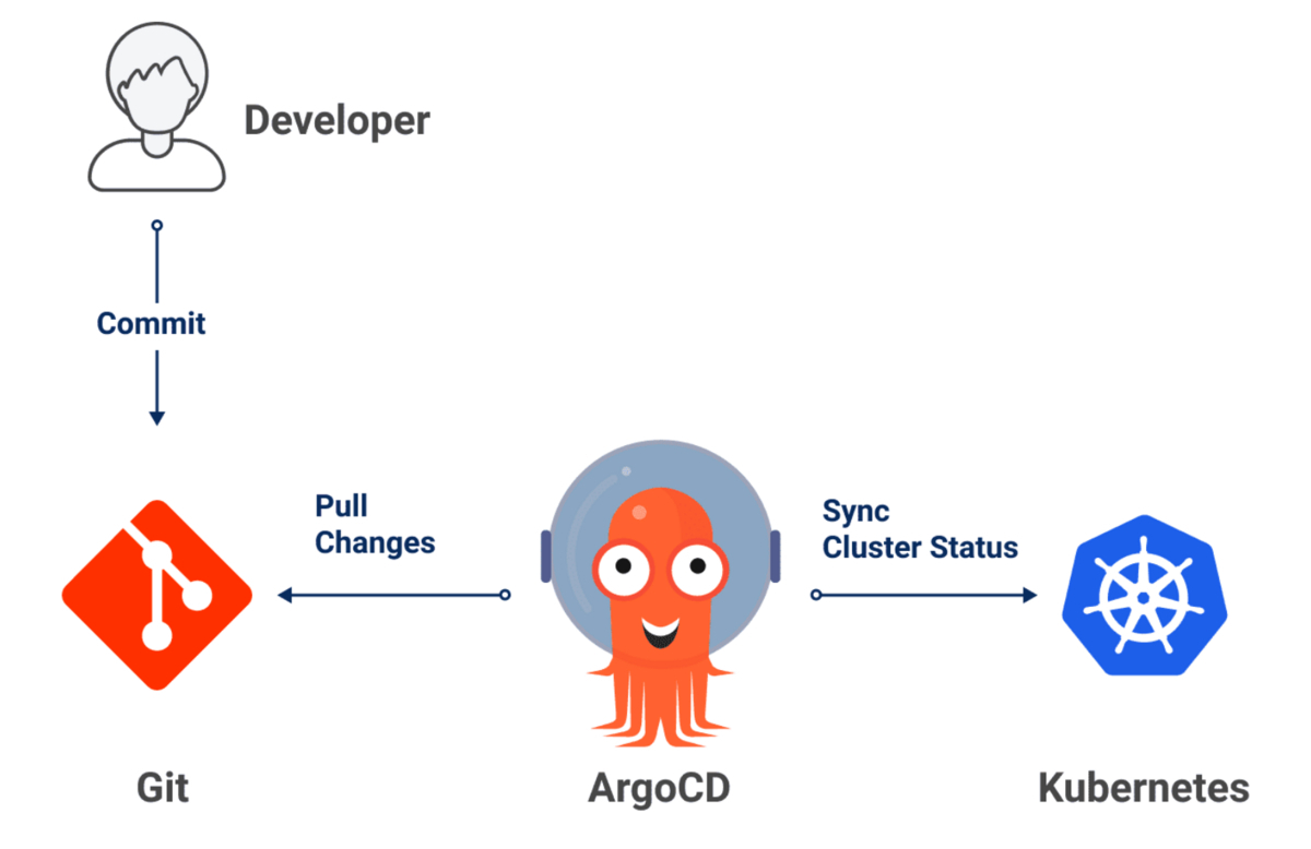 以下に、Argo CDによるデプロイフローの簡単な概念図をCloud Native Computing Foundation(CNCF)のブログ記事より引用します。