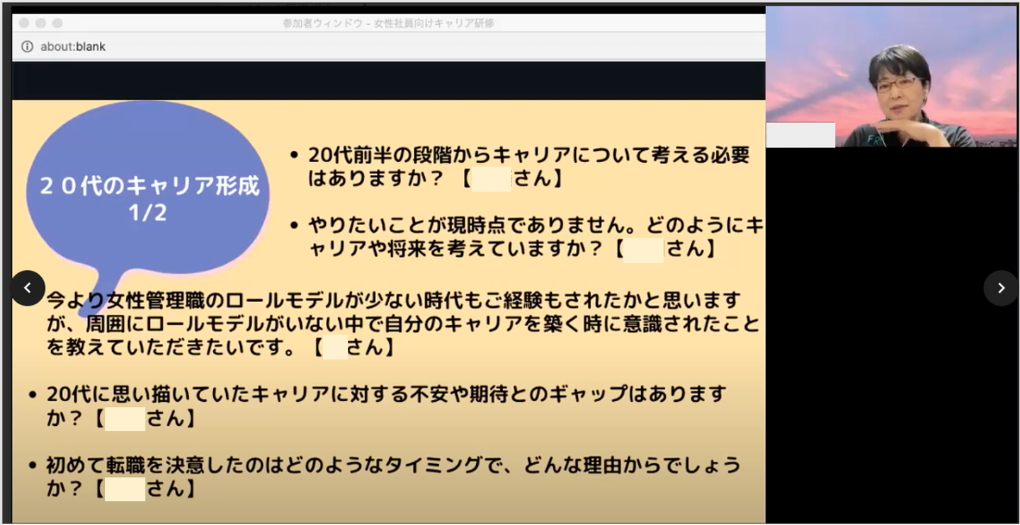 ZUUは創業10周年を迎え、結婚や出産など、ライフイベントを迎える社員も増えてきました。今回は、こうしたライフイベントを迎えても安心してキャリア形成ができるよう、経験者から貴重なアドバイスを受けられるオンライン研修を実施しました。