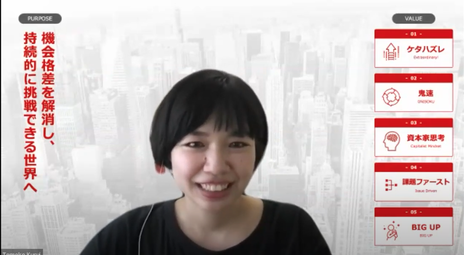 「20代のうちに実力を高め、どこでも生きていける力をつけるために、チャンスが来たら挑戦してみること、任された仕事は120%で返すことを決め、業績達成を続けることで、次のチャンスに巡り会える。その連続が自身のキャリアを決める一助となる。一方で自分はどうありたいのか?何を目指すのか?は常に問い続ける姿勢を持っておくと良いのでは?」と。