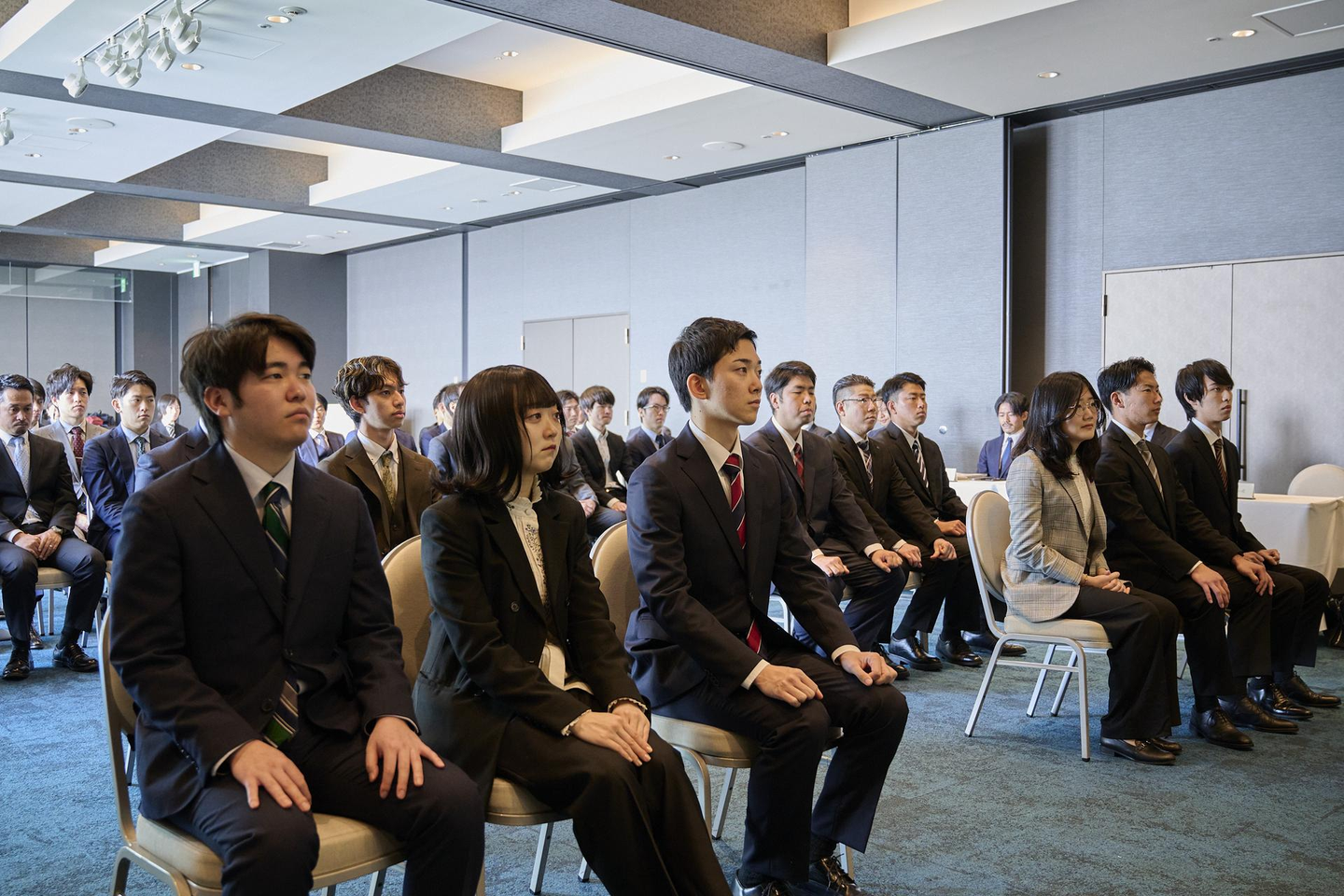 式はオープニングムービーから始まり、代表冨田や取締役からの”今日だからこそ伝えたいメッセージ”、最後に新入社員からの所信表明を行っていただきました。
