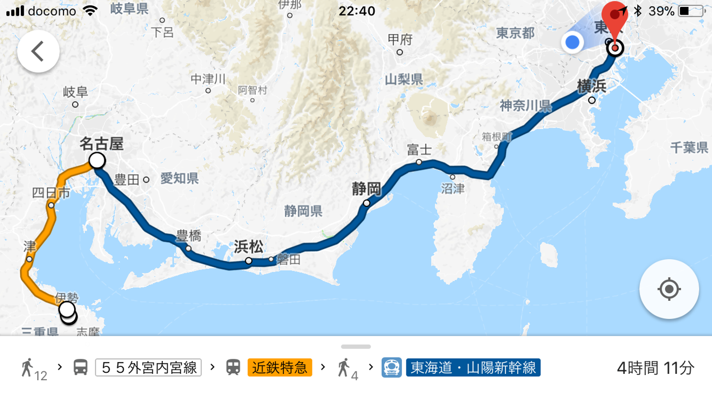伊勢神宮からの帰路は、まずバスで宇治山田駅前で下車し、近鉄特急で名古屋へ移動、新幹線で東京駅まで、合計で4時間程の移動時間となります。