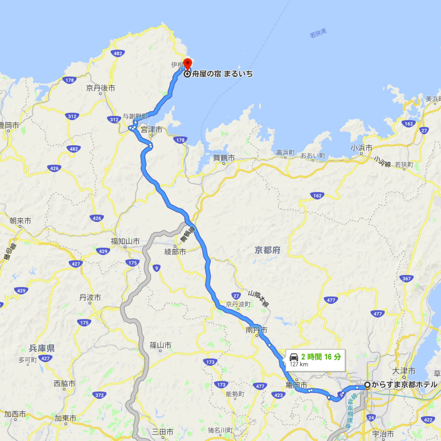 京都縦貫自動車道を与謝天橋立インターで降りて国道176号へ。