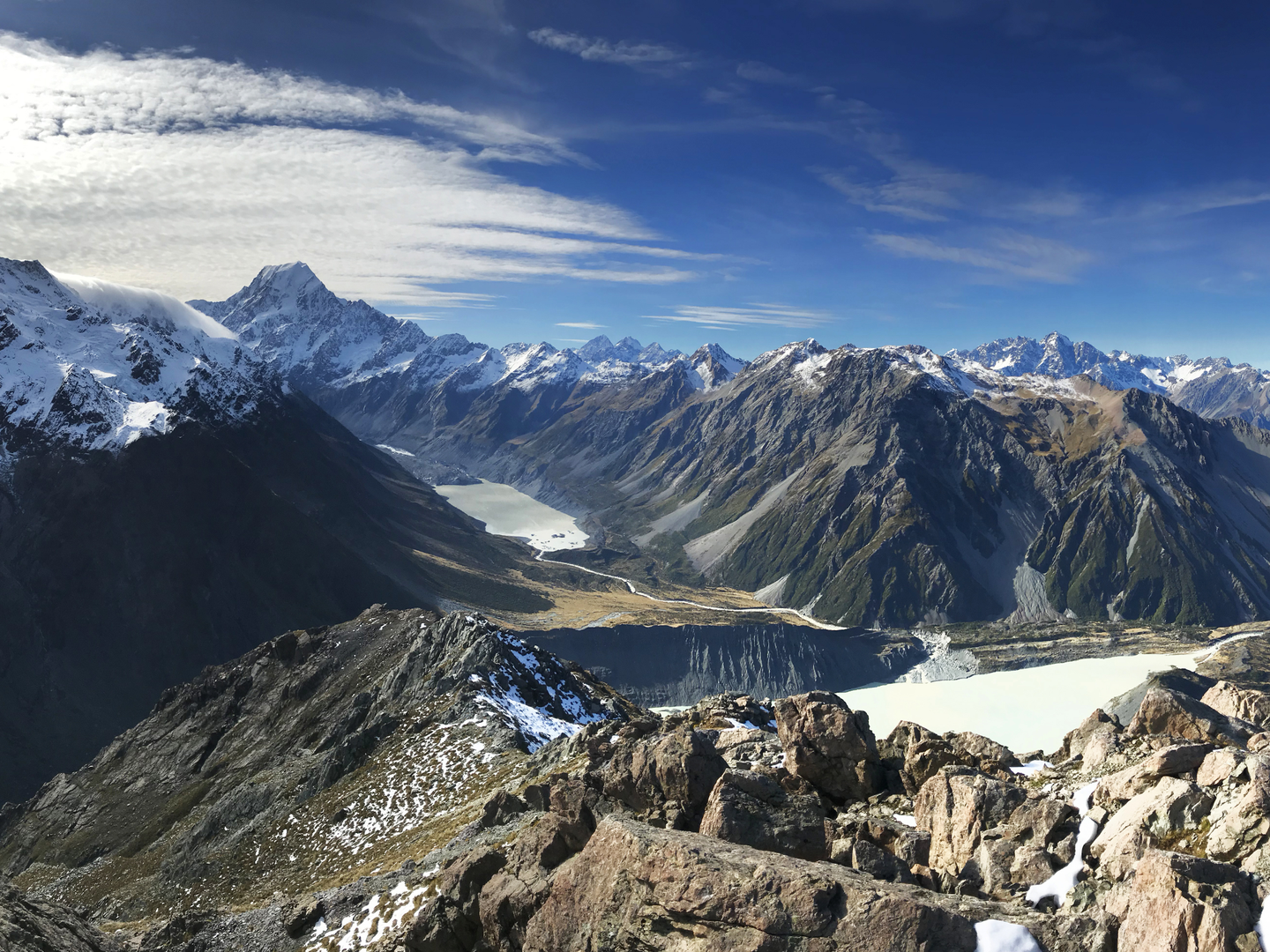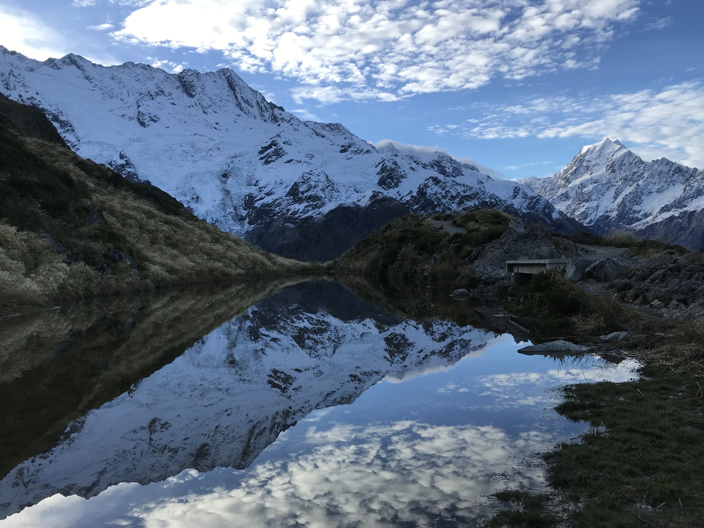 場をマウント・クック国立公園に移しミューラー・ハット・ルート。高低差がありそこそこ厳しい箇所もあるとのことで単独で。