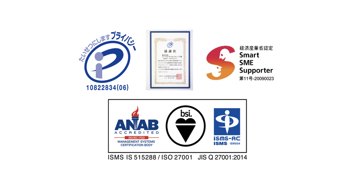 弊社は情報セキュリティとプライバシー保護認証機関から、正式に認証を取得しております。