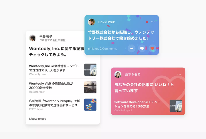 Wantedly People を静的な情報を保管する名刺管理ツールから、動的に情報を発見・発信できるアプリに進化させるためにアプリのリニューアルを行いました。 リニューアルでアプリの中心機能となったタイムライン(Updates)のプロダクト・エンジニアリング全般をリードしました。直接的にはコンセプト設計からプロトタイピングを通じたドメイン設計、今後の改善の方向性を見据えたアーキテクチャの設計など、設計全般を担当。