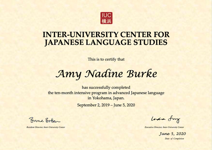 スタンフォード大学に運営されている集中日本語プログラムです。特に法律(憲法・民法・契約の法律)とビジネス日本語にフォーカスしていました。 An intensive program for advanced learners of Japanese offered by Stanford University. My studies were particularly focused on law (constitution, civil law, and contracts) and business Japanese.