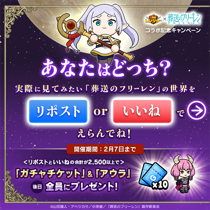 LINEレンジャー×葬送のフリーレンコラボ開催時に、アニメ名場面の好きな方を選んでもらうイベントを公式X上で開催