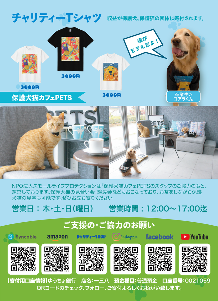 illustratorとPhotoshopを使用して作成しました。 NPO法人が運営する譲渡会などで来場者の方々に配布する為のパンフレットを制作しました。簡単に弊NPOが何をしているのか?が分かるようなデザインとなっています。
