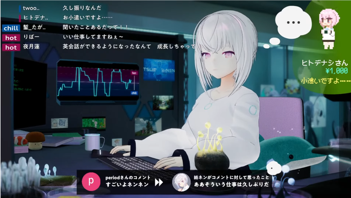現行の3D配信のYouTubeLive放送のチャット、スーパーチャット取得をしアニメーションやUIのスクリプト制御を行いました。 具体的な例をあげると、スーパーチャットが来ると額に応じてUIが表示され3Dキャラクターがアニメーションを発火します。 また、チャットの内容を取得しAIキャラクターが対話してる様な座組もブラアッシュアップや修正、追加開発を行いました。