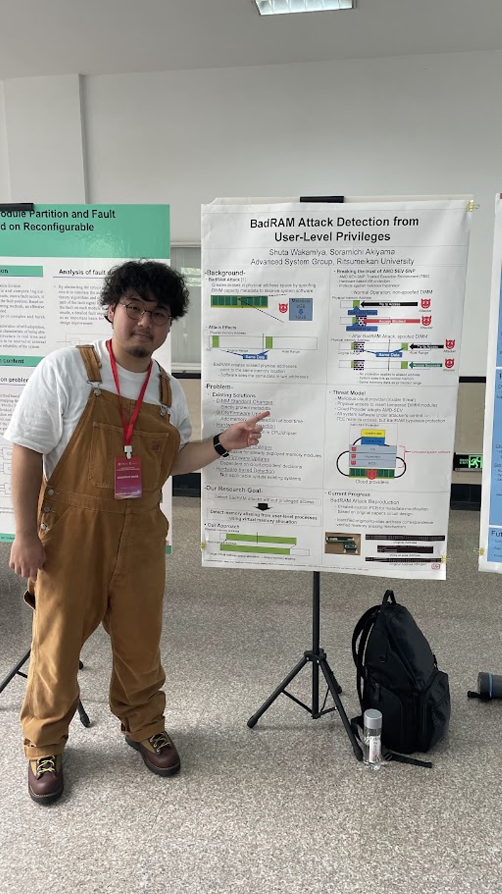 立命館大学情報理工学研究科計算機科学コースに所属しています。専門はDRAMメモリのセキュリティです。主にソフトウェア・ハードウェア境界に位置する攻撃を研究しています。