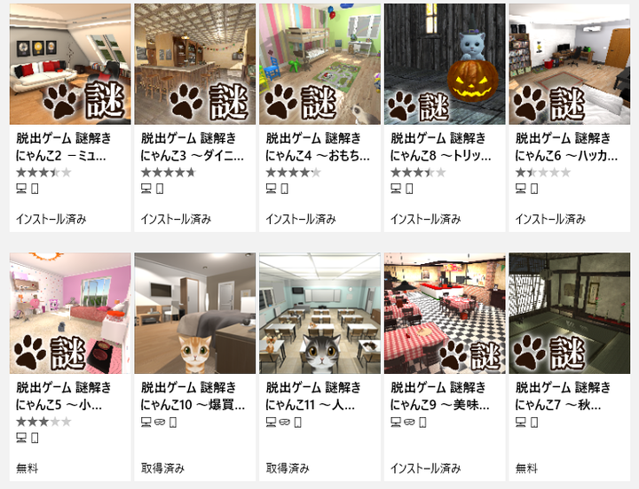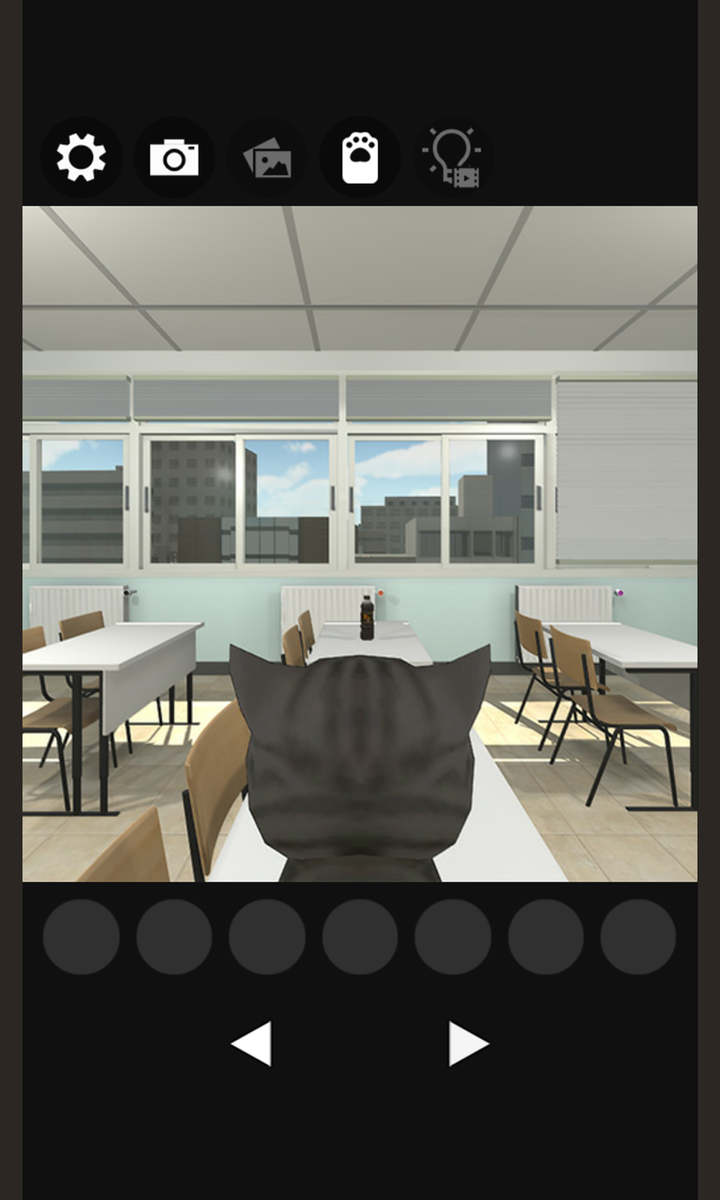 Unity、Photoshop、Blender を使用し、iOS / Android / Windows10 向けに個人で脱出ゲームをリリースしています 「ねこ視点」の「脱出しない」脱出ゲームであることと、画面のスクリーンショットを撮影しあとで見返す画面メモ機能が斬新と評価されている脱出ゲームです