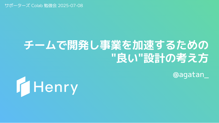 サポーターズ Colab 勉強会で、ソフトウェアの設計を作るにあたって自分が気をつけていることについて発表しました。 https://supporterz-seminar.connpass.com/event/359970/