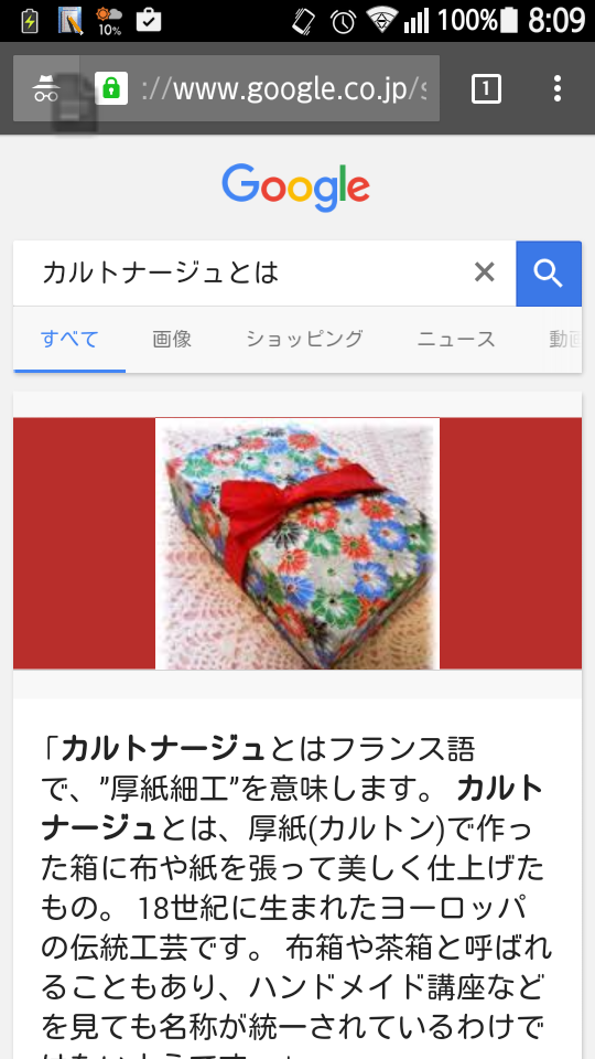 自分の趣味であるカルトナージュのサイトのあるページが、「カルトナージュとは」の検索キーワードでGoogleのリッチスニペット(2016年7月当時の呼称はアンサーボックス)に採用された時の記録(いわゆる魚拓)です。 自分の制作した作品の画像が、カルトナージュの代表のようにドーンと表示されると、意図して頑張った咎いえ、なかなか恥ずかしいものがあります(苦笑)