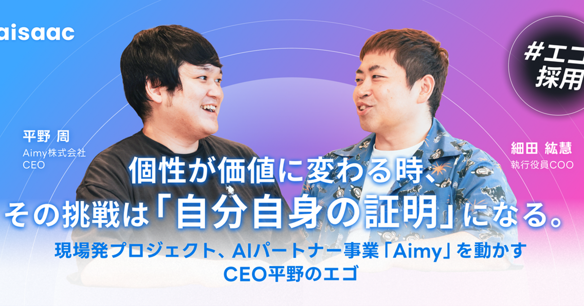 個性が価値に変わる時、その挑戦は「自分自身の証明」になる。 - 現場発プロジェクト、AIパートナー事業「Aimy」を動かすCEO平野のエゴ