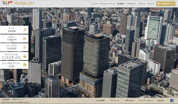 フェスティバルタワー・ウエストの竣工に伴い、「中之島フェスティバル・シティ」プロジェクトの一貫として、Webサイト制作を企画提案から担当しました。