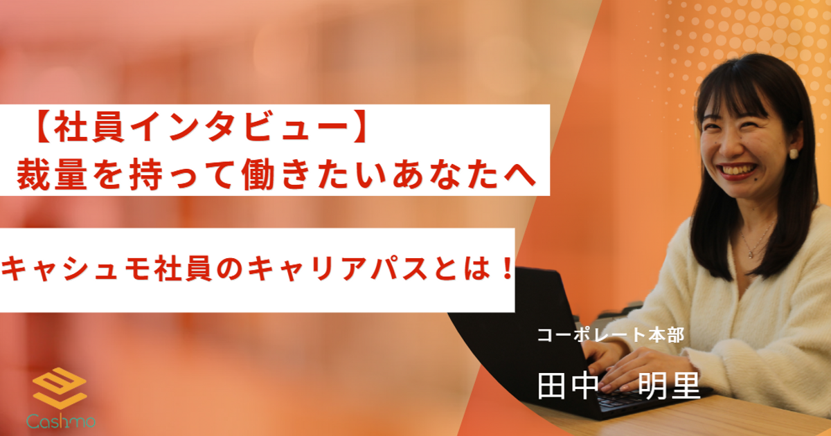 2023年4月に入社いたしました。 「キャシュモの顔となり、当社の魅力を多くの人に伝える」というテーマを掲げ、 入社1‐2年目はセールスとして「中小企業の社長さま」にご提案し、 その後は現在まで、採用担当として応募者さまをサポートしております。