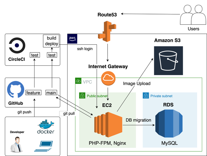 使用スキル: Docker, PHP, Laravel, Nginx, MySQL, Amazon EC2, RDS, Route53, CircleCI URL: http://app-kiseki.com GitHub: https://github.com/akinoringo/app-kiseki
